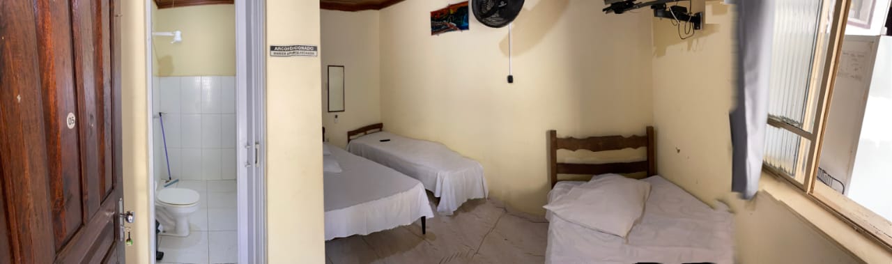 "Ótimo quarto, com 3 camas de solteiro e uma de casal e também tinha ar condicionado."